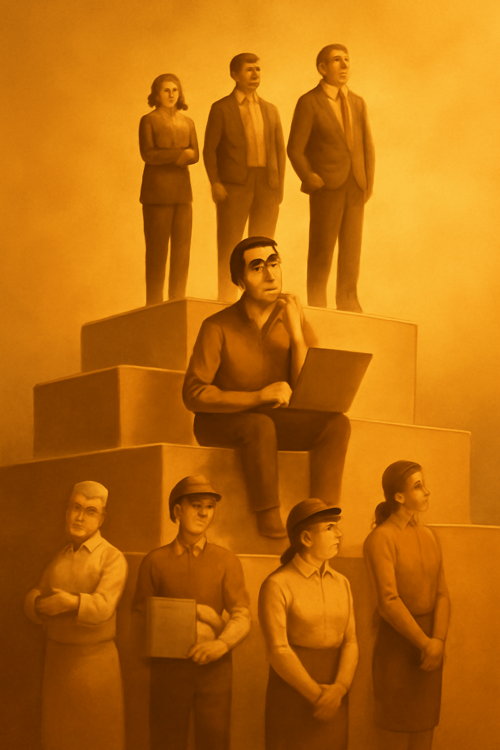 I’ve been trying to use various AI models to generate images, as I find the end product interesting. The featured image for this post was done via Perplexity, and it got pretty close to what I wanted to convey. I wanted to show the different hierarchies shown in the documentary in a cinematic way.